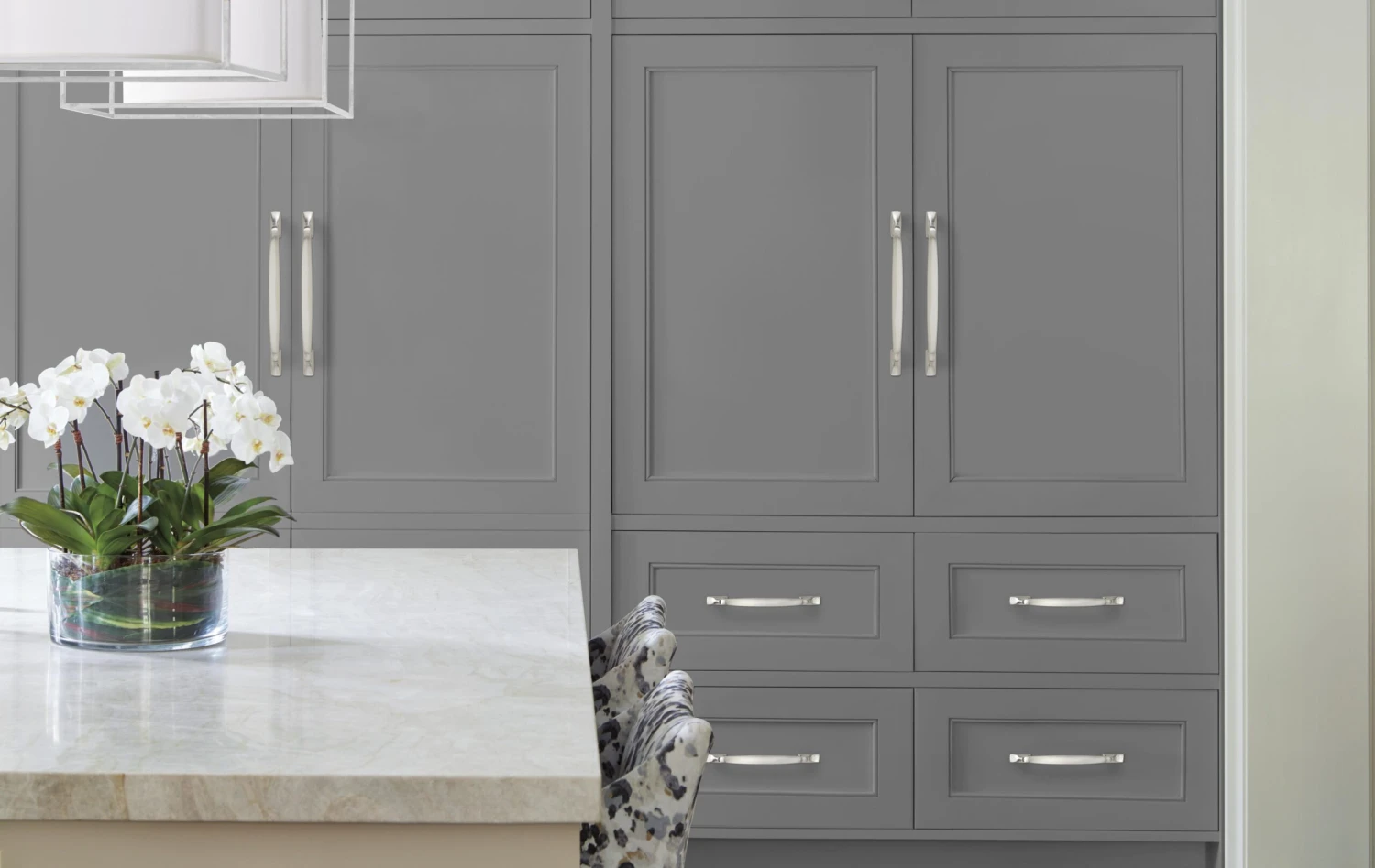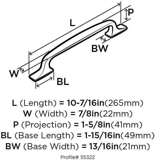 This traditional appliance cabinet pull is available in antique pewter, dark oiled bronze (dob), and polished nickel finishes.