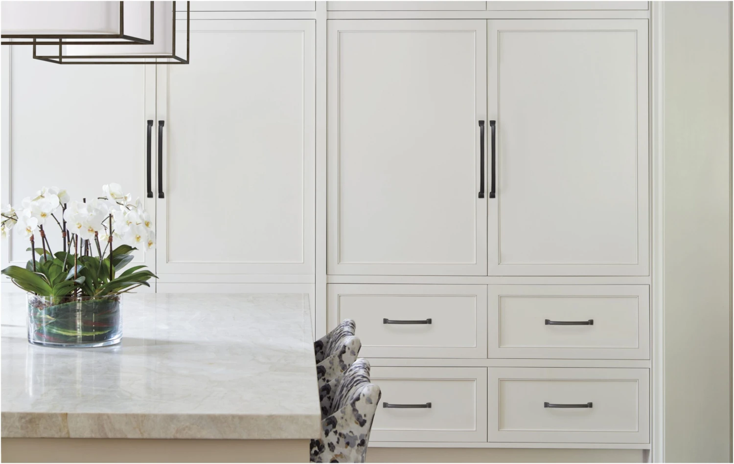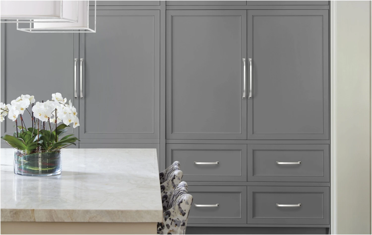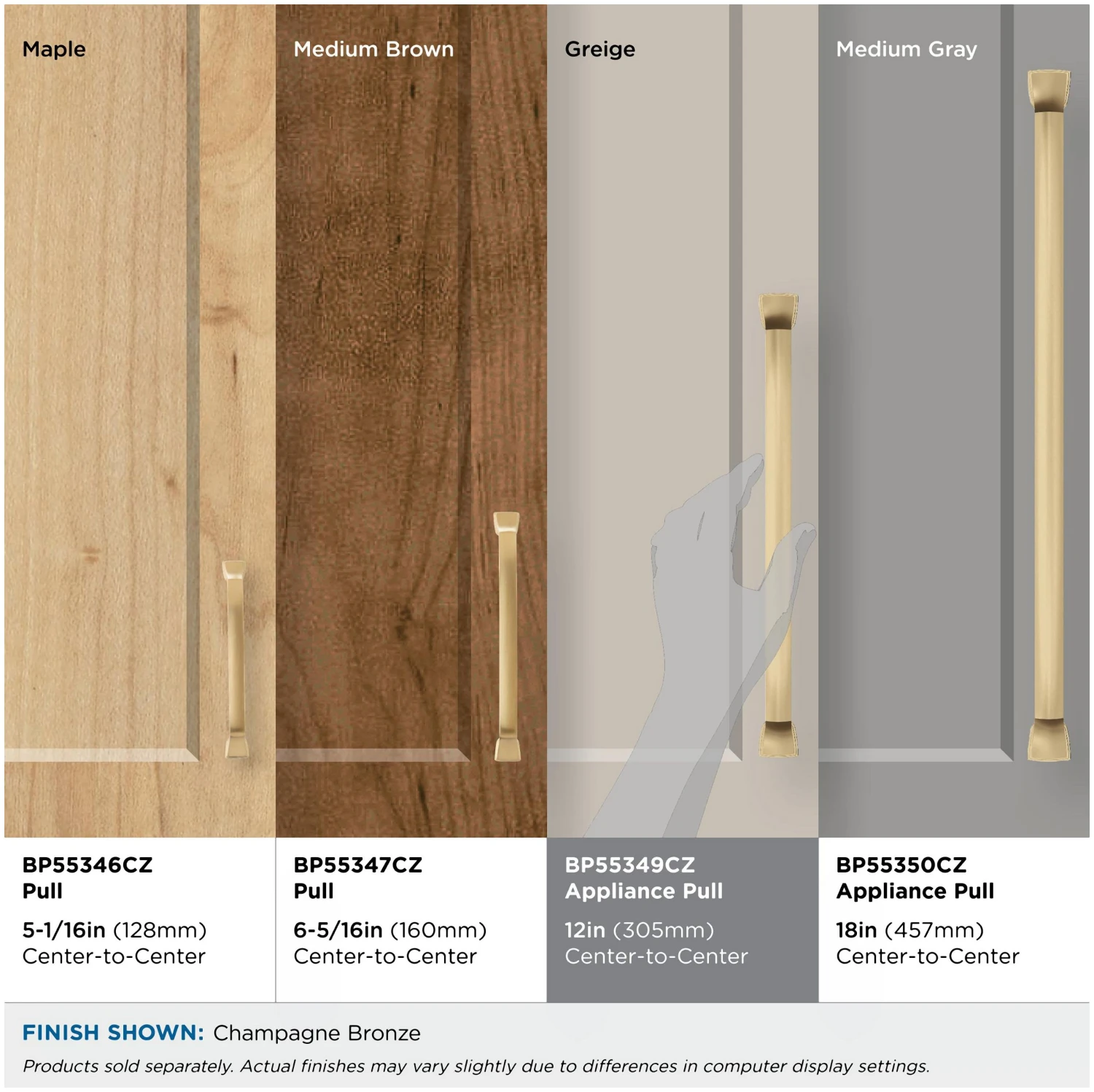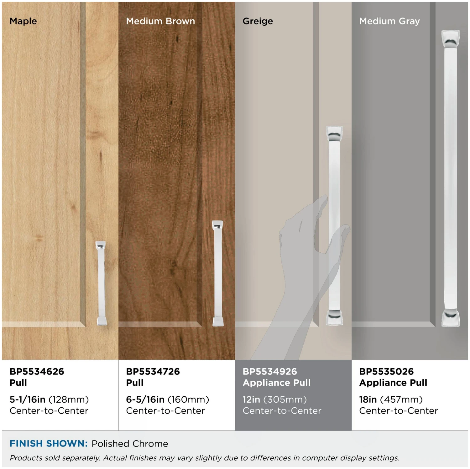 This contemporary appliance cabinet pull is available in a wide variety of finishes.
