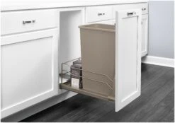 Rev-A-Shelf 53WC Series Bottom Mount Single Bin Trash Can – 50 Quart Capacity Champagne