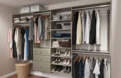 Easy Track 25-1/8 Inch Wide Closet Organizer System With Three Drawers Weathered Grey