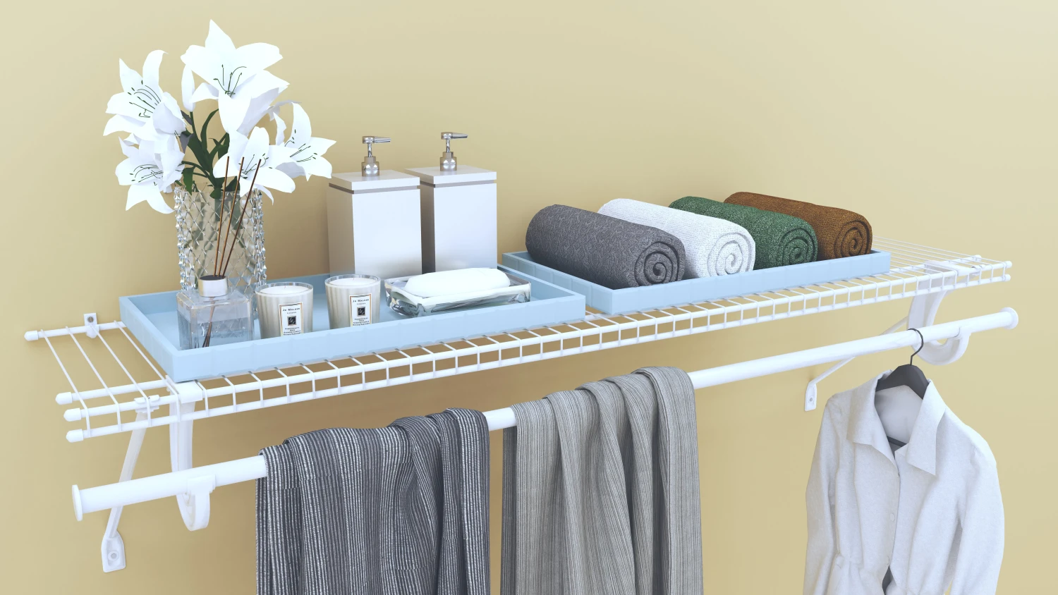 The economical way to organize your closets. Ventilated shelving allows for air circulation and room for clothes to breathe and wasted space is fully utilized.