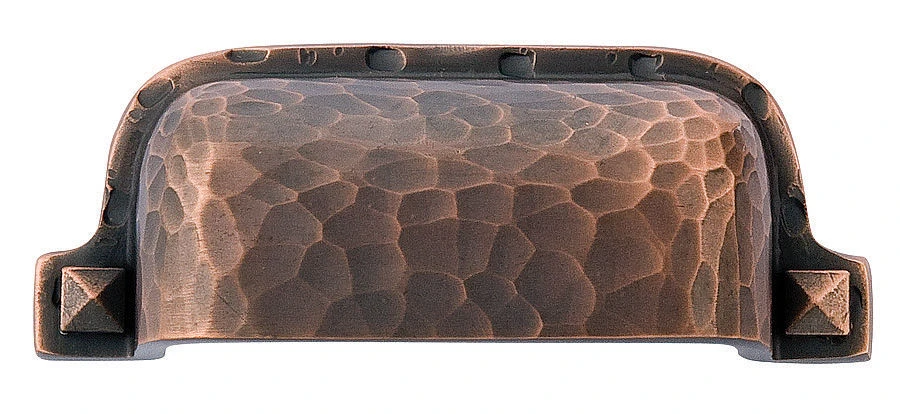 This rustic cup cabinet pull is available in oil rubbed bronze and satin nickel finishes. This pull features solid construction making it much more durable.