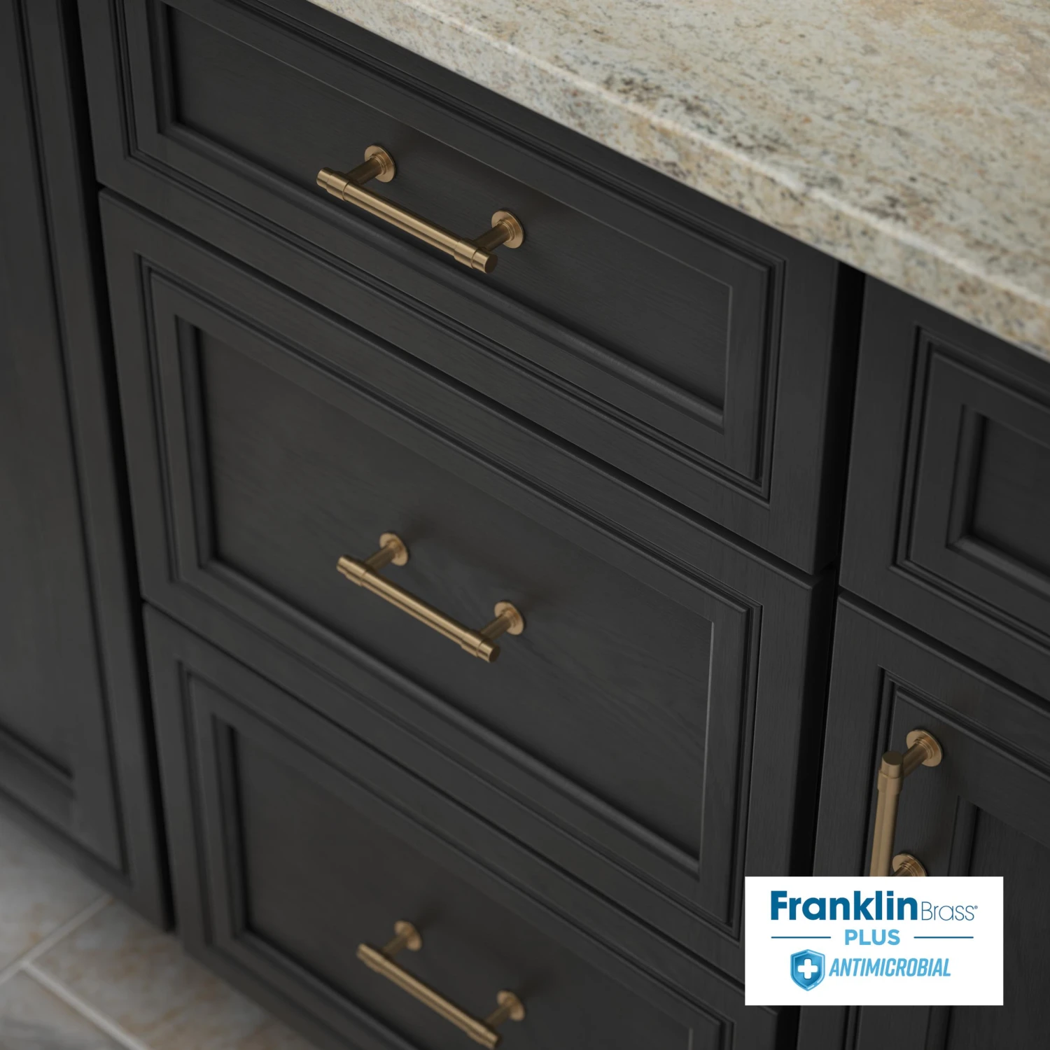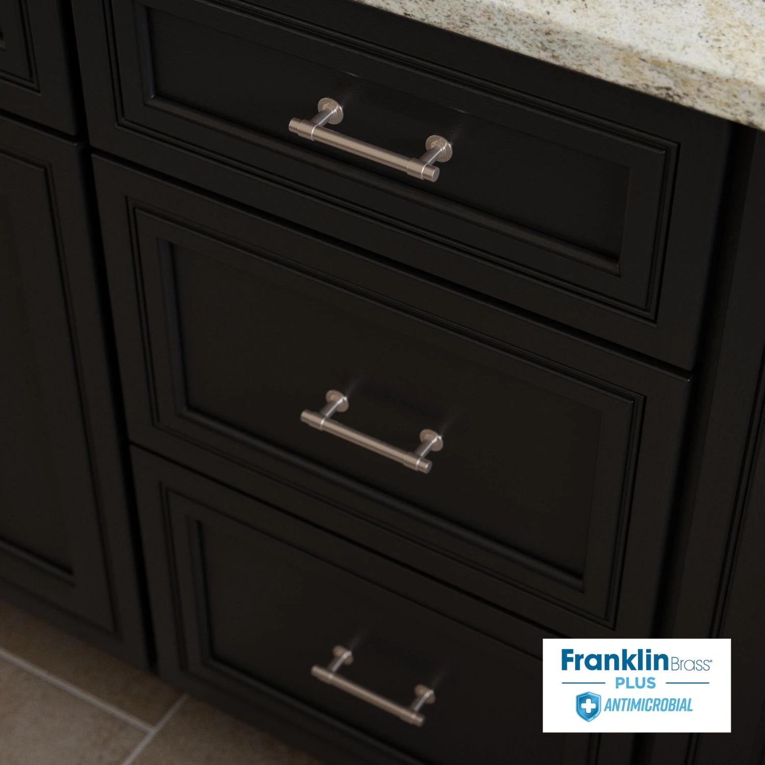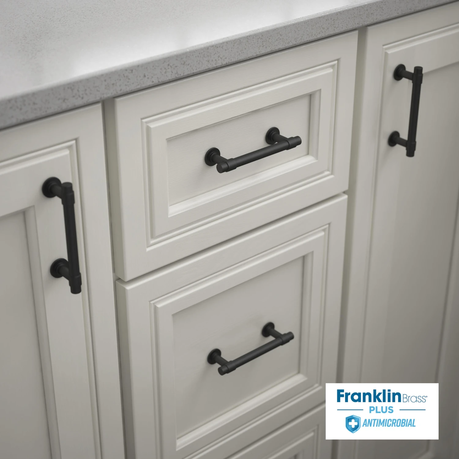 We could all use a little bit of help around the house. What about a solution to reduce microbial growth on high-touch surfaces? Franklin Brass Plus Antimicrobial gives your product continuous protection against microbes – and you don’t even have to ask. The antimicrobial finish uses silver ions that are already built into your pulls and the protection lasts the life of your product. The antimicrobial finish is safe, non-toxic, and it doesn’t rub off like sprays or coatings.