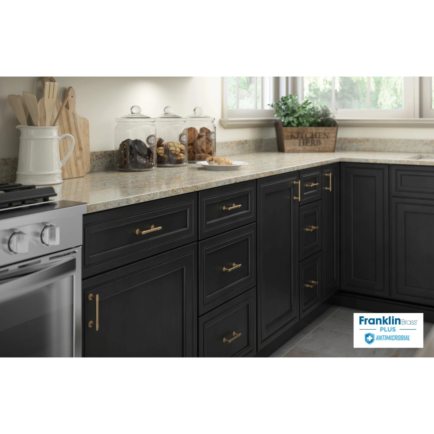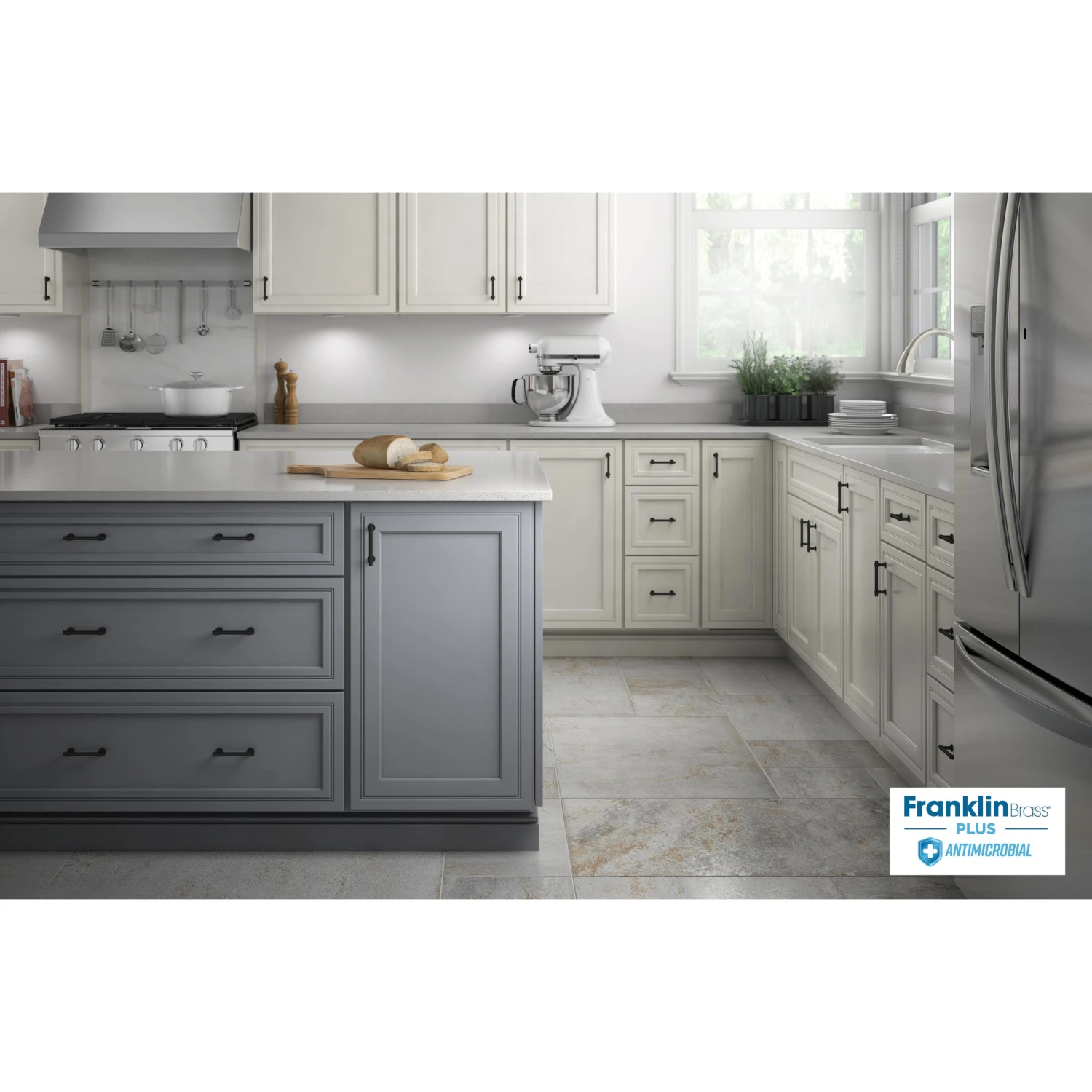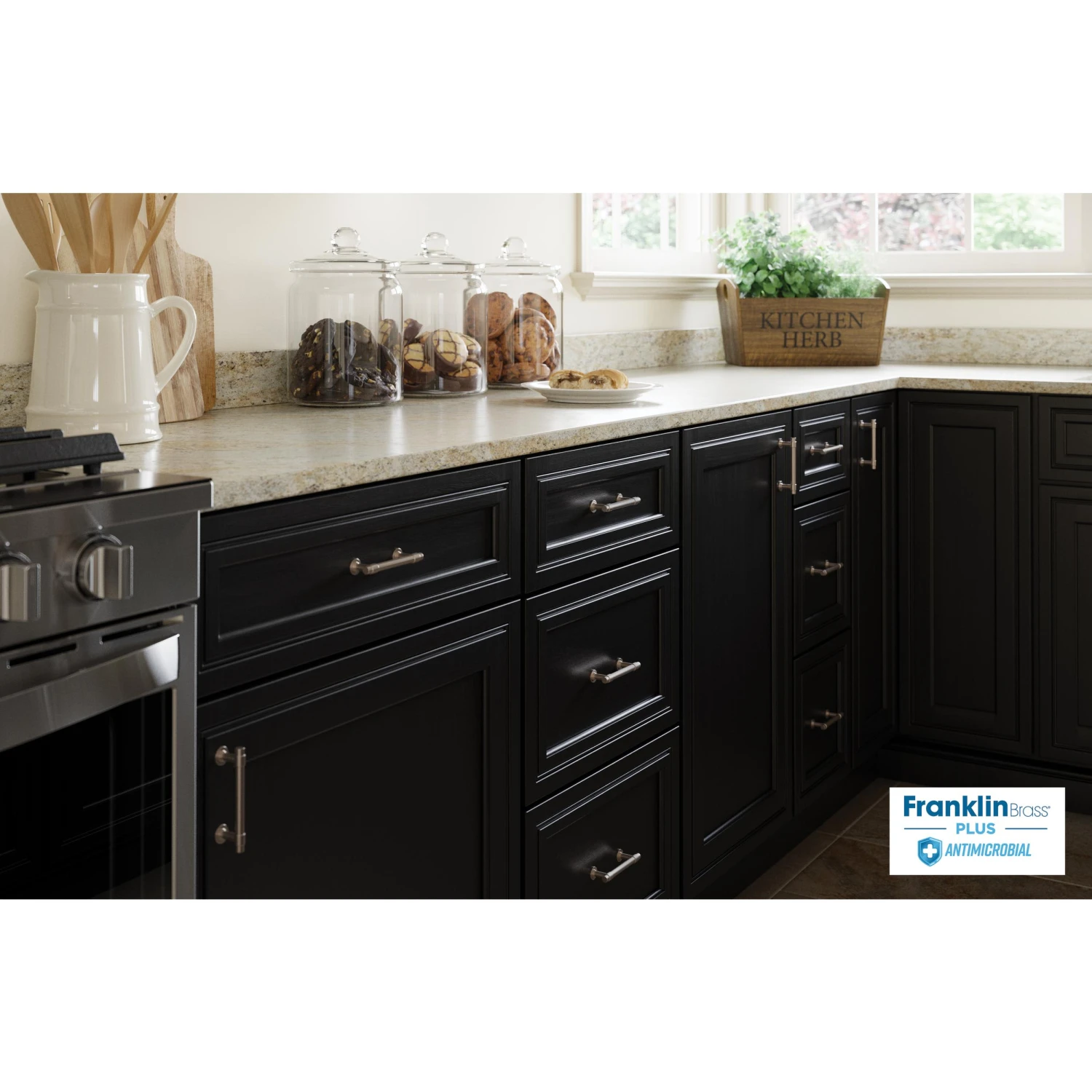 We could all use a little bit of help around the house. What about a solution to reduce microbial growth on high-touch surfaces? Franklin Brass Plus Antimicrobial gives your product continuous protection against microbes – and you don’t even have to ask. The antimicrobial finish uses silver ions that are already built into your pulls and the protection lasts the life of your product. The antimicrobial finish is safe, non-toxic, and it doesn’t rub off like sprays or coatings.