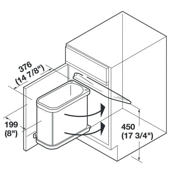 - Open your cabinet door and have your waste bin pivot out.