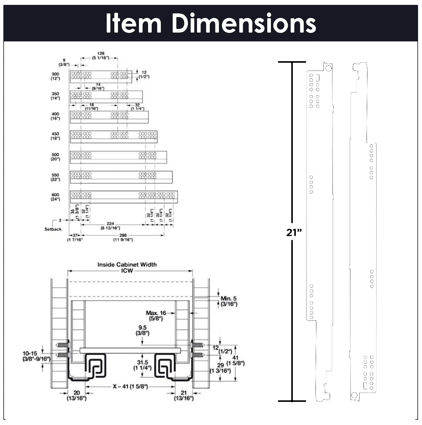 - Slide Length: 21-3/8″