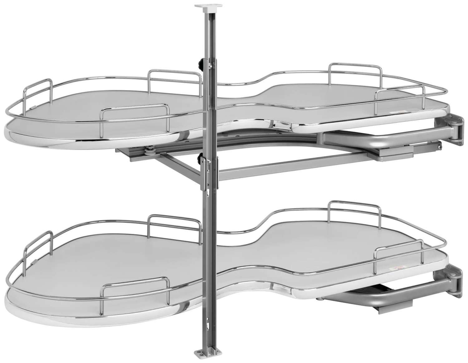 Reach for the stars and fulfill your storage needs with the Cloud Orion Gray Contemporary Organizer. Designed for full access (frameless) blind corner cabinets with 15, 18 or 21 openings, the new Cloud with Orion gray flat wire and textured linen finish complements contemporary kitchens and adds updated style to traditional and transitional designs. Available in both single and two-tier, in either left or right hand options, the Cloud fits into nearly all blind corner applications and is available with or without soft-close.