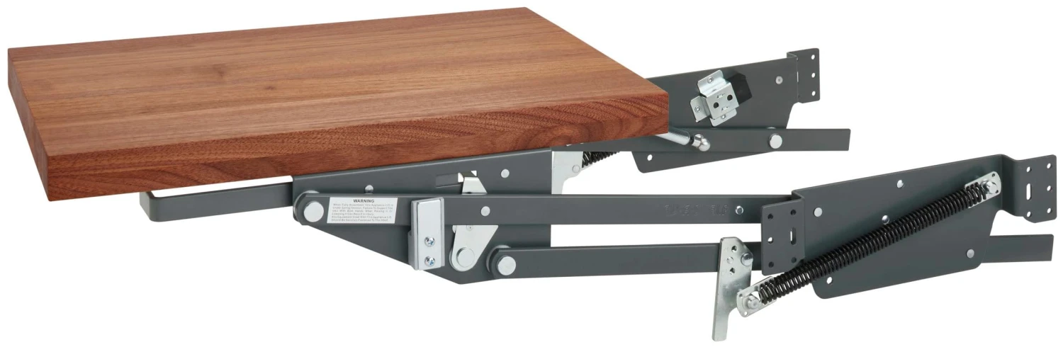- Spring loaded system gently assists the movement of small appliances to counter height