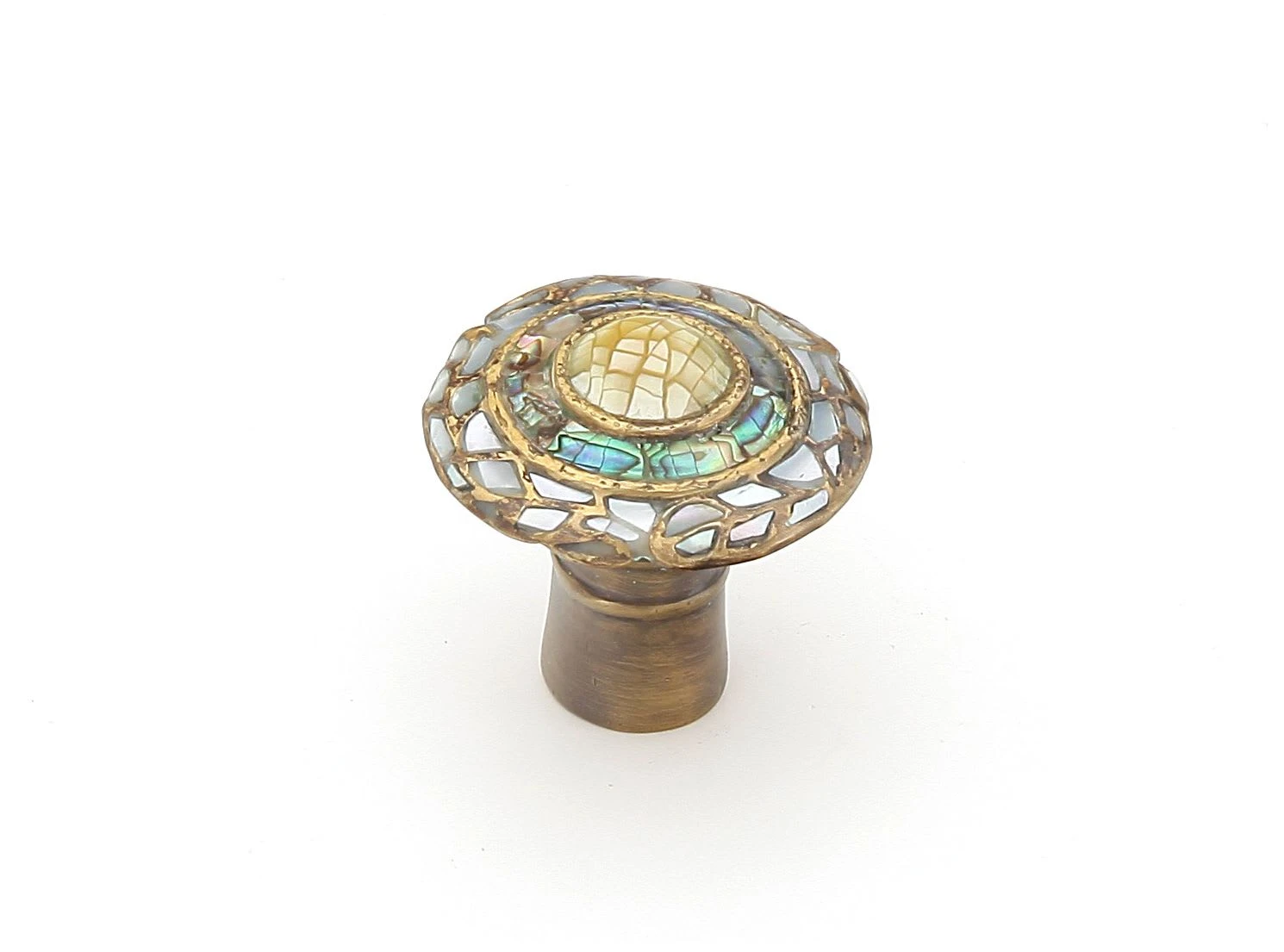 This traditional mushroom cabinet knob is available in a high quality aged dover finish. This knob features solid construction making it much more durable.