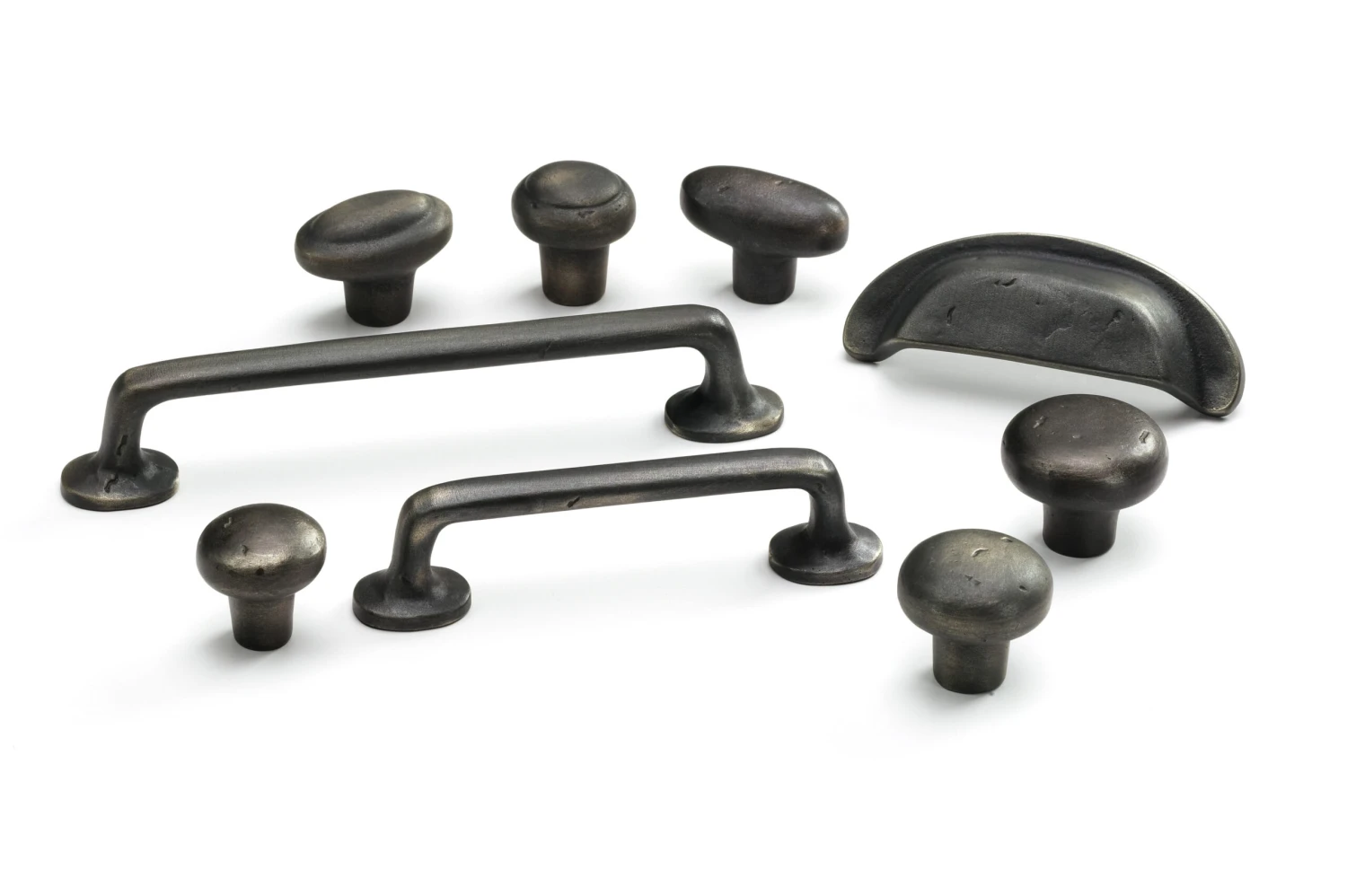 This rustic oval cabinet knob is available in many excellent finishes. This knob features solid construction making it much more durable.
