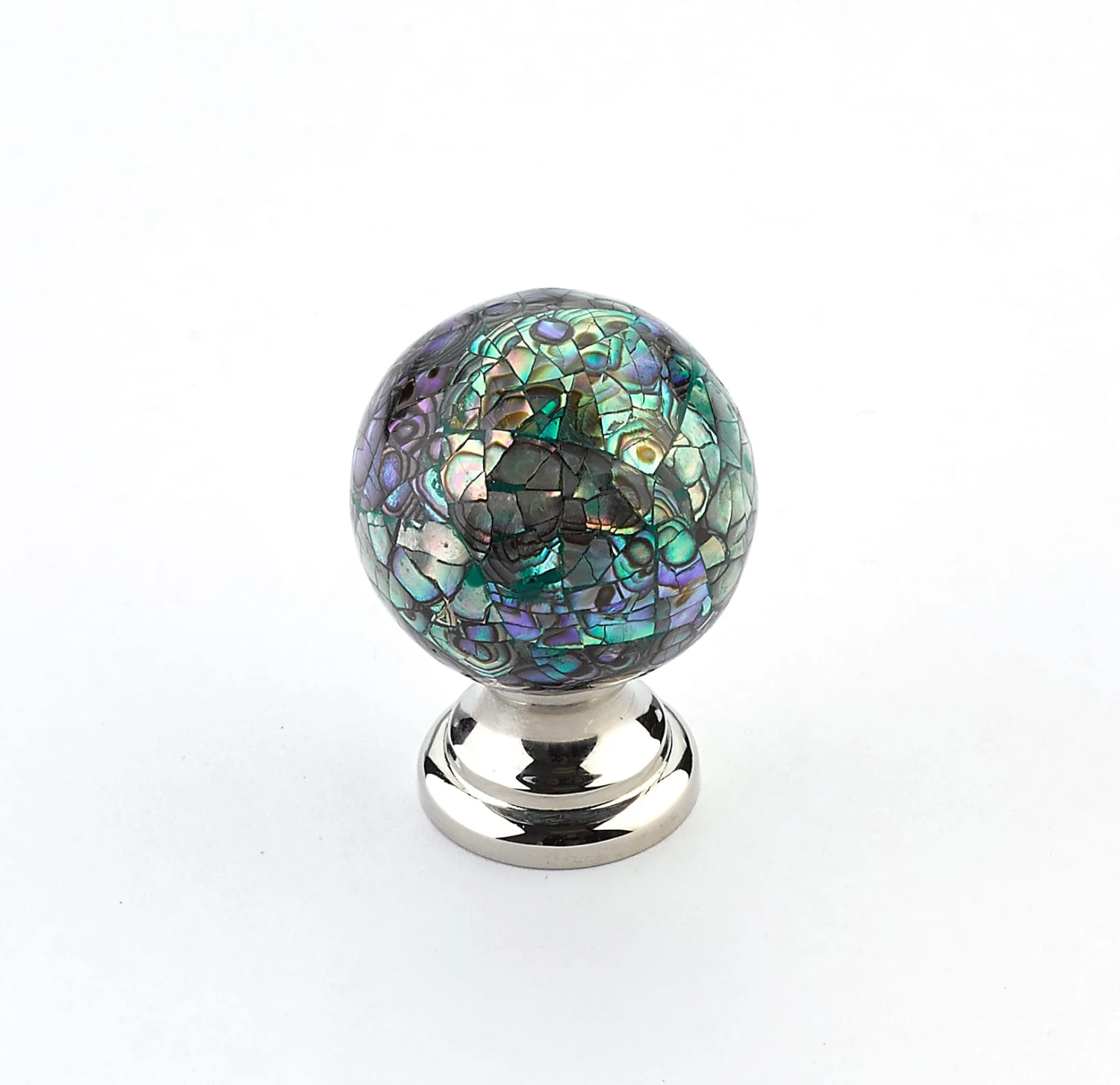 This rustic round cabinet knob is available in penshell and white mother of pearl / polished nickel finishes. This knob features solid construction making it much more durable.