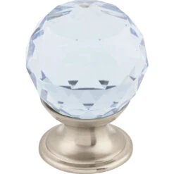 Top Knobs Light Blue 1-3/8 Inch Round Cabinet Knob From The Crystal Collection Brushed Satin Nickel