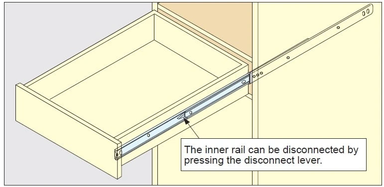 - Lever allows for quick and easy removal of the drawer from the cabinet members