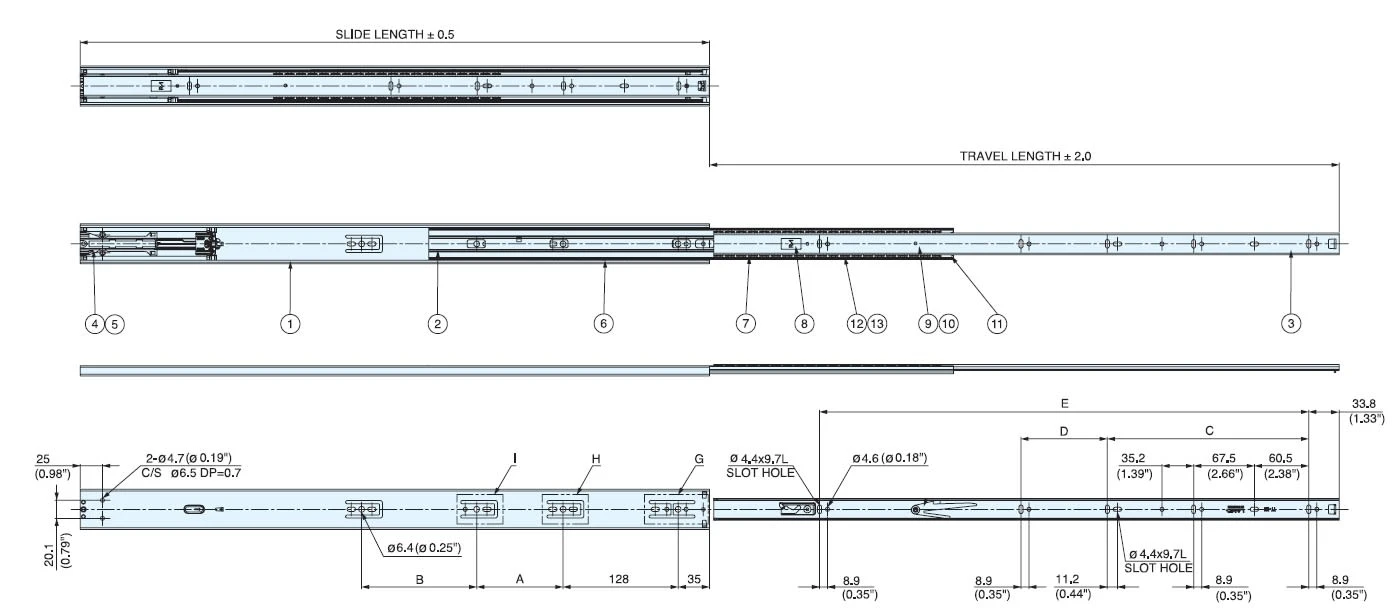- Slide Length: 19-11/16″